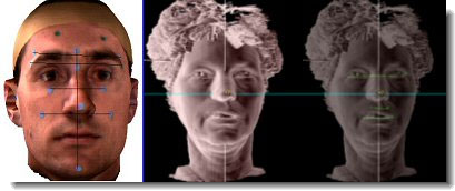 Accurate, high-resolution surface data were acquired for healthy subjects (n=30) and for patients who had received burns or other trauma to the face (n= 15). Three-dimensional coordinates of facial anatomical landmarks were recorded and include right and left tragion, sellion, right and left inframalar, right and left ectocanthus, right and left gonion, and menton.