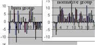 Newly transformed coordinates of the landmarks were resolved for transverse, vertical, and sagittal components. The centroid location was calculated for the soft tissue landmarks for both the normative and burn groups. Bilateral asymmetry was evident in the normative group, revealing that the right side of the face is generally larger than the left side. This degree of right-left dominance measured as a ratio of 1.06 was not found in the facial trauma group and hence, could be used as a threshold of asymmetry.