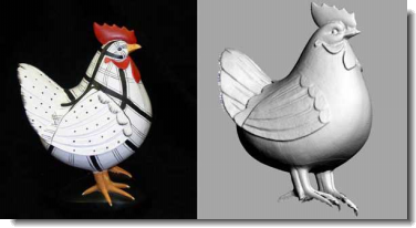 Total Contact will scan your inanimate object for modeling, animation, and computer aided design applications. Implementing the Cyberware 3030RGB/MS scanning system. Total Contact can scan any object up to 3’ in height and approximately 2’ in diameter. The data can be translated in various formats including stl, dxf, ply, obj, 3ds, wrl, iv, iges, asc, and 3dm.
