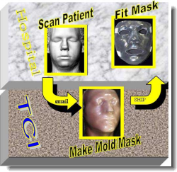 After you are scanned, the mask is shipped within 3- 5 days to a burn center nearest you. (Overnight shipment is available if necessary.) A fitting for the mask can be done either at the hospital where the scan was taken, or with the therapist at your hospital of choice. A prescription and letter of medical necessity from your physician are required to obtain a mask. Your therapist will then take over care and use of the mask at his or her discretion.