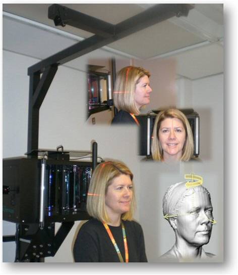 Total Contact now offers a positioning guide for the Cyberware head scanner. The Positioning Laser System or the Plus superimposes a laser coordinate system that precisely and consistently positions the patient within the scanning volume.